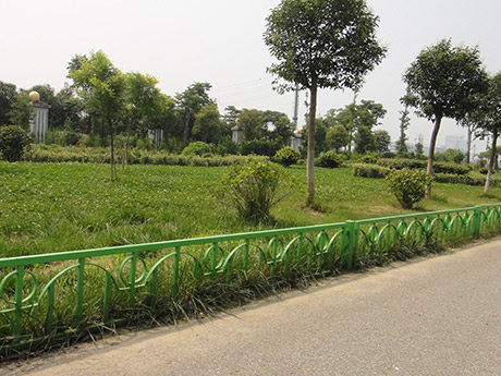 2、草坪鋅鋼護欄鍍鋅管的管材表面含鋅量,在常溫下能夠3-5年不生銹。